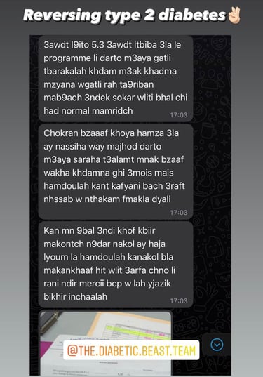 عن طريق المتابعة لي كنقدمو ليكم، كنعاونوكم أنكم تلقاو التوازن المثالي مع السكري، و تعالجو مقاومة الأنسولين. عن طريق أنظمة تغدية علاجية، و متابعة يومية عن قرب، خطوة بخطوة حتى توصلو للهدف ديالكم